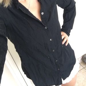 This sexy black button up can work for date night or with a button higher it's awesome for the business woman.