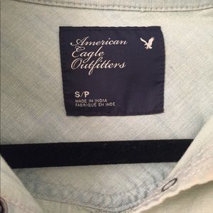 American eagle jean button up. Light wash/worn look. Can be worn as jacket or shirt. Worn once. Perfect condition.