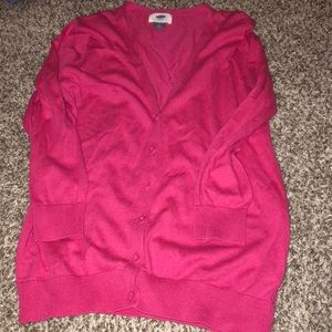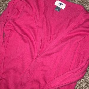 Light material. Pink. Half button up with open chest as pictured. 3/4 sleeve.