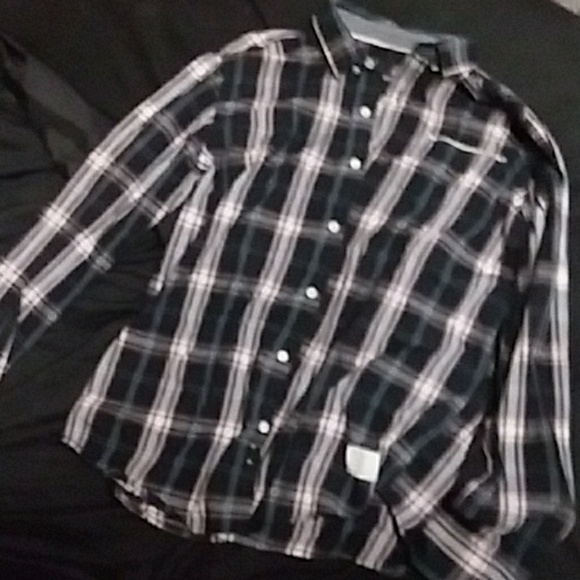 Red white and black button up