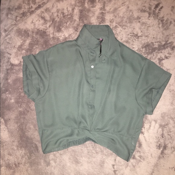 Dark green Flowy button up with tied front