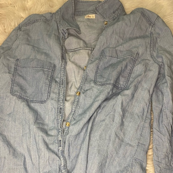 Hollister button up jean tee Buttons on sleeves