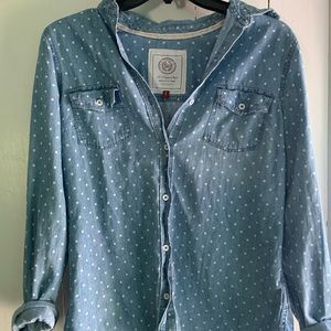 quarter sleeve polka dot. Listed as large, but fits like a medium