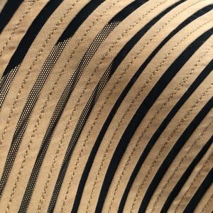 Lined with a black mesh that makes it stretch out between the tan fabric.