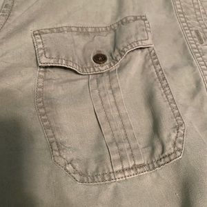 A camo green button up