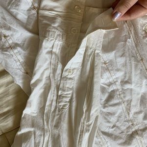 • Mens White button up with brown/gold threads
