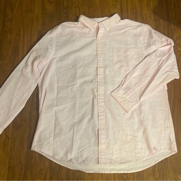 Oversized pink pinstriped button up. Super cute can be used over work clothes or even a swimsuit