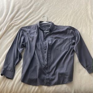 Button up, must be a kid’s xl (fit’s like a loose fitting men’s medium but arms are shorter)