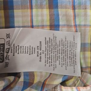 Cute button-up shirt with multi colored buttons, size 12-18 months, from Germany, brand is Ergee.