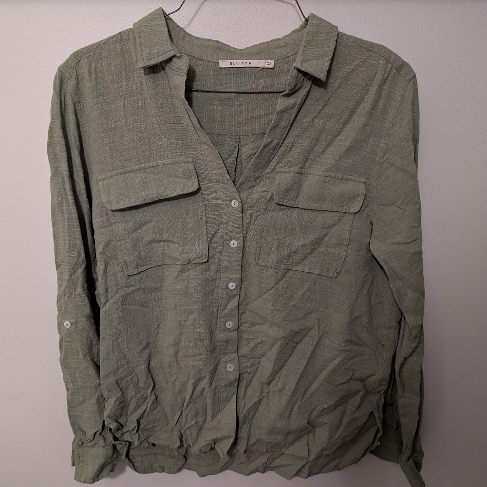 button up linen like long sleeve