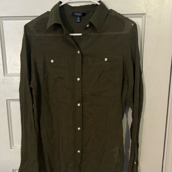 Sheer button up. Dark green excellent condition