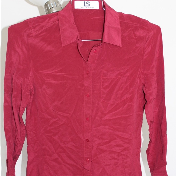 100 percent silk Laurie Solet button up blouse. Red. New and never worn