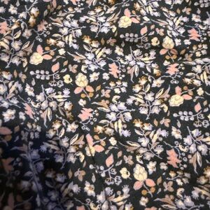Cotton like material. No flaws, beautiful floral pattern.