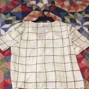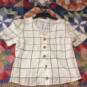 Button up grid patterned top