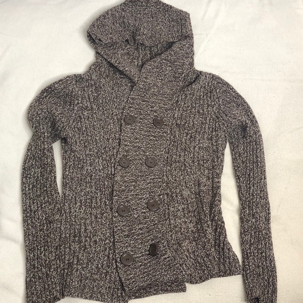 This is a hooded jacket with 8 buttons on the front, in amazing condition and very warm