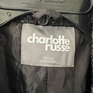 Like new Charlotte Russe button up and tie jacket. Heavy material to keep you warm. Grey and black in color. Size small. Only worn a couple times!