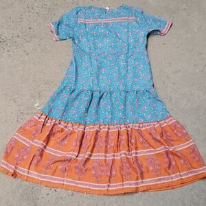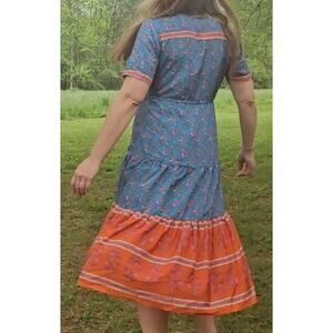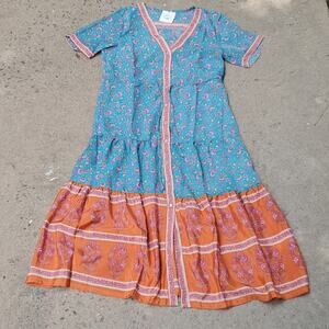 Button up lightweight tiered midi cover up dress colorblock floral multicolor large
