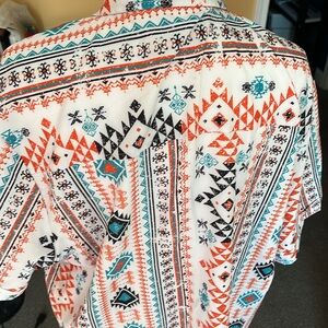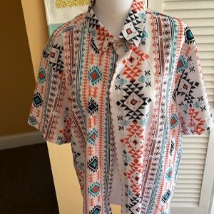 Button up short sleeve men’s shirt. Polyester colorful shirt. Never worn just tried on. Good condition.