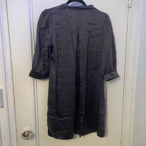 Gray silken shirt dress. Buttons all the way up in the front.