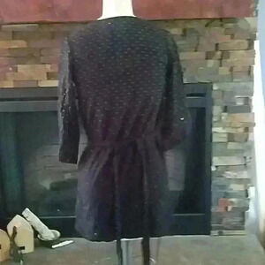 3/4 sleeve. Waist tie. Cutouts along neckline.