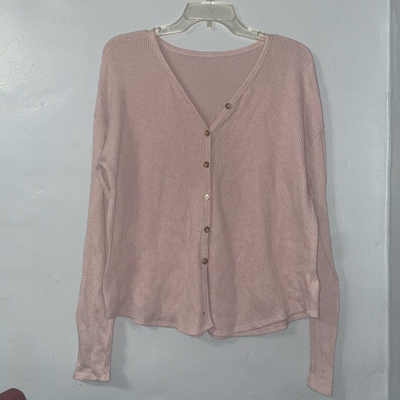 Button up sweater Pink, brown buttons, can be also worn as a cardigan, soft material, size Large, great condition