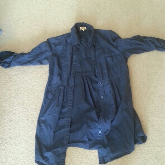Navy blue button up top. Long.