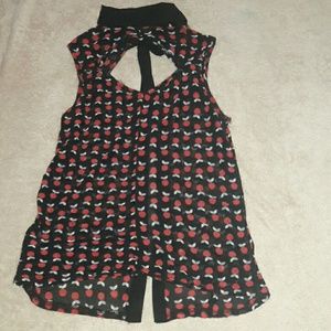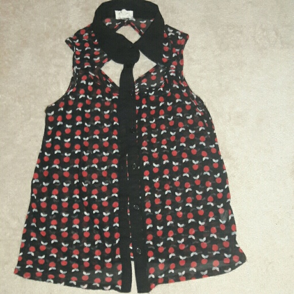 Black with red apples sleeveless, with collar... 93%Polyyester,,7%Spandix