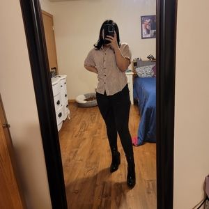 Adorable button up top The strips are a brown color, very pretty! Tag Size: XL Could also fit a L #button #top #blouse #losAngeles #crop