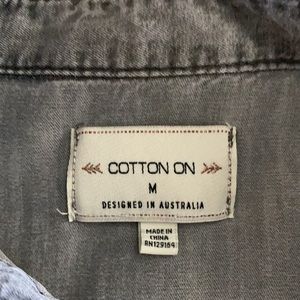 Grey colored button up top good for running errands or meeting for a drink