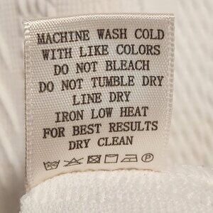 Washed per label instructions, stored in a smoke-free and pet friendly environment.