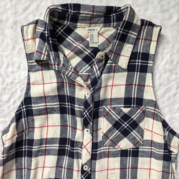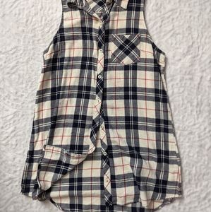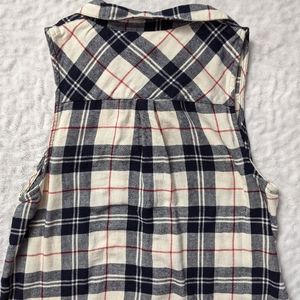 This can be worn as a long top or depending on you, a dress ! It is a plaid sleeveless button down top, the colors are perfect for fall & winter season! The top hadn't been worn before.