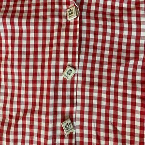 This is a checkered, button-down, long sleeve shirt featuring 3 buttons accented with charming spice designs: basil, sage, and chives.