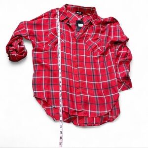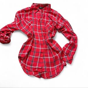 100% Rayon #plaidshirt #redplaid #buttondown #rolltabsleeves #western