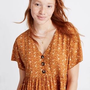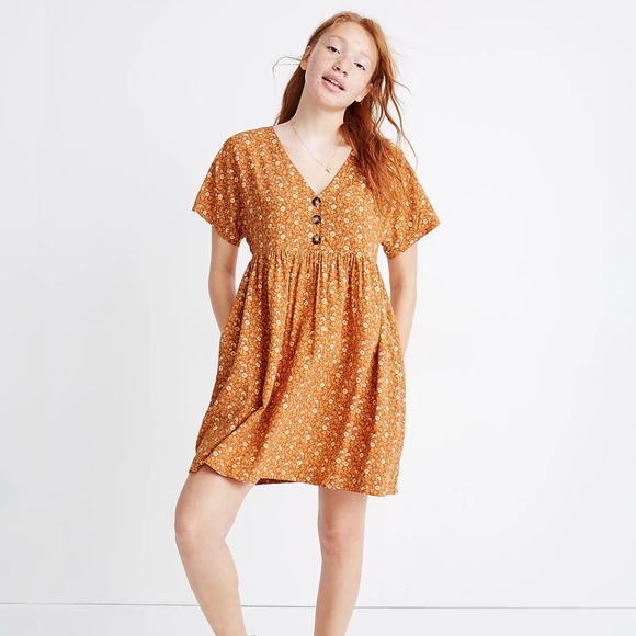 Made of soft and flowy fabric in a mini floral print, this button-front babydoll dress is a dream. Swingy, easy and just so cool.