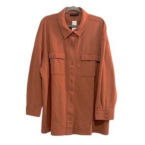 🌟 Half shirt, half jacket -- a style that can do it all, in copper hue. The softest french terry makes this a never-want-to-take-off layer.