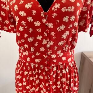 Button-Front Tie-Sleeve Retro Dress in Happy Hibiscus - SMALL-