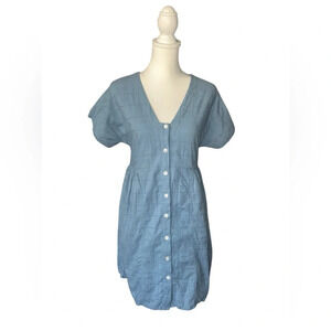 In airy eyelet lace, this summery V-neck mini dress has subtle shirring at the sides to add a little shape and buttons running all down the front.