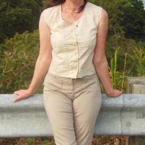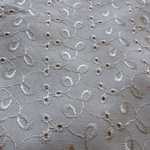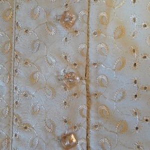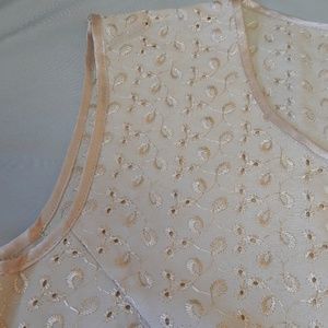 Custom made, beautiful silk eyelets, cream color top, like new. Measurements => pit to pit 19" from top of the shoulder to the bottom 20"