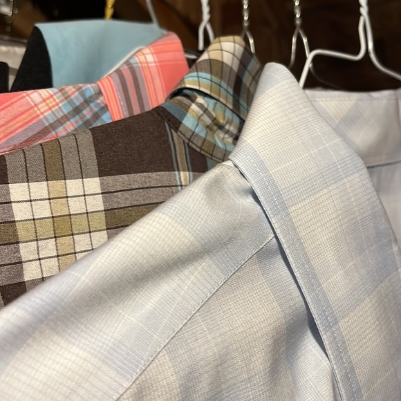 My remaining men’s XL and XXL button-up shirts in excellent condition. See my closet for individual listing photos and details, and let me know if you have any questions. Each they are $10, but I’d sell all three for $20.