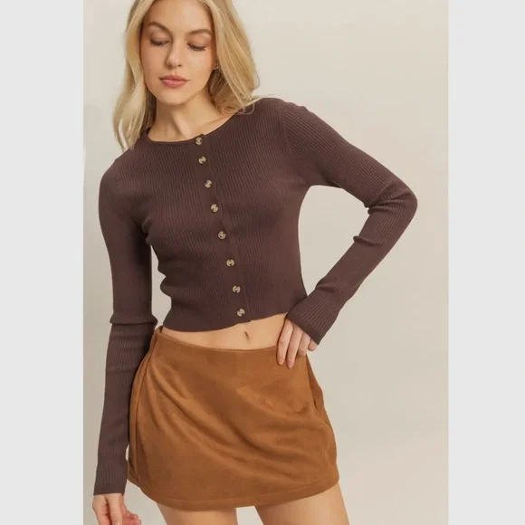 Button-Up Ribbed Knit Top- nwt
