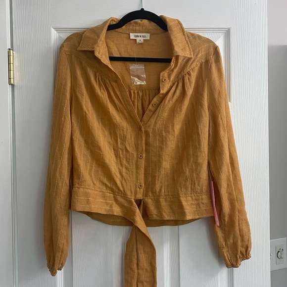 The cutest top that I have never got around to wearing. Tags still attached. Purchased from NanaMacs. Can easily be tucked into high waisted jeans if you’re not a fan of the tie detail :)