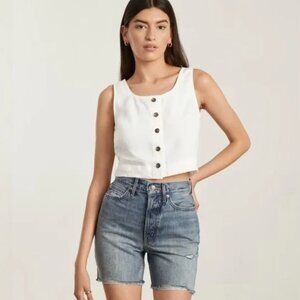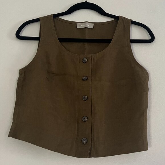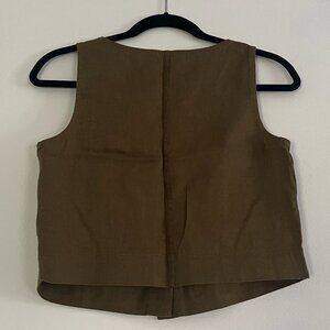 this is an olive-colored linen sleeveless top that buttons up! reposhing because it is just slightly too small for my body 🙂