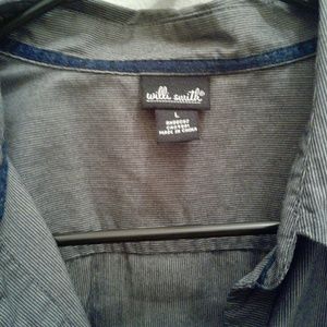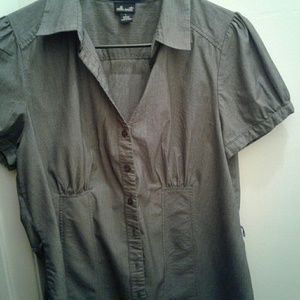 Dark gray button down shirt. Nice and crisp and in great condition! Size L.