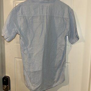 Amazon Essentials light blue and white, gingham print, button-down shirt. Great condition, no flaws. Women's size S/P