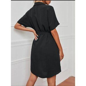 Button-down short sleeve shirt dress bohemian minimalist preppy black