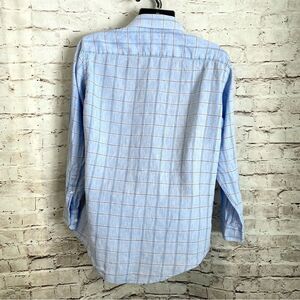 Buttoned Down Linen Cotton Plaid Casual Shirt Men Blue Medium Long Sleeve