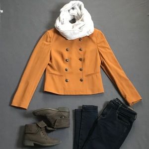Mustard color jacket with buttons. Wear with booties and a scarf for a cozy fall look! Size medium.