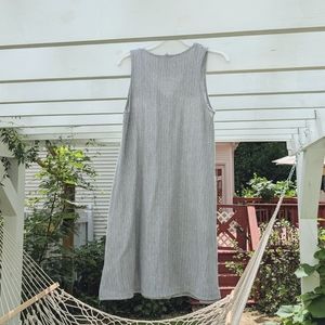 A comfortable buttoned down dress. It's perfect for going downtown or running errands with clean sneakers or sandals.