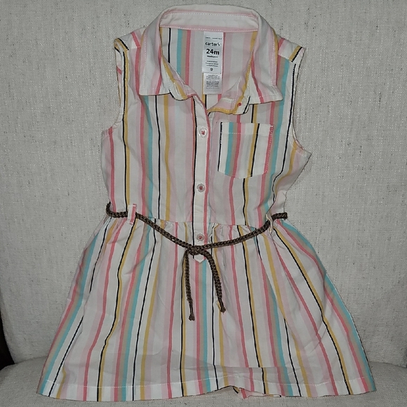 This casual sundress by Carter's features a sleeveless design with a notched collar, perfect for warm weather. Ideal for casual outings, its relaxed silhouette ensures comfort and ease.