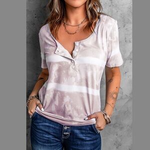 Buttoned Tie-Dye Short Sleeve Top Apricot